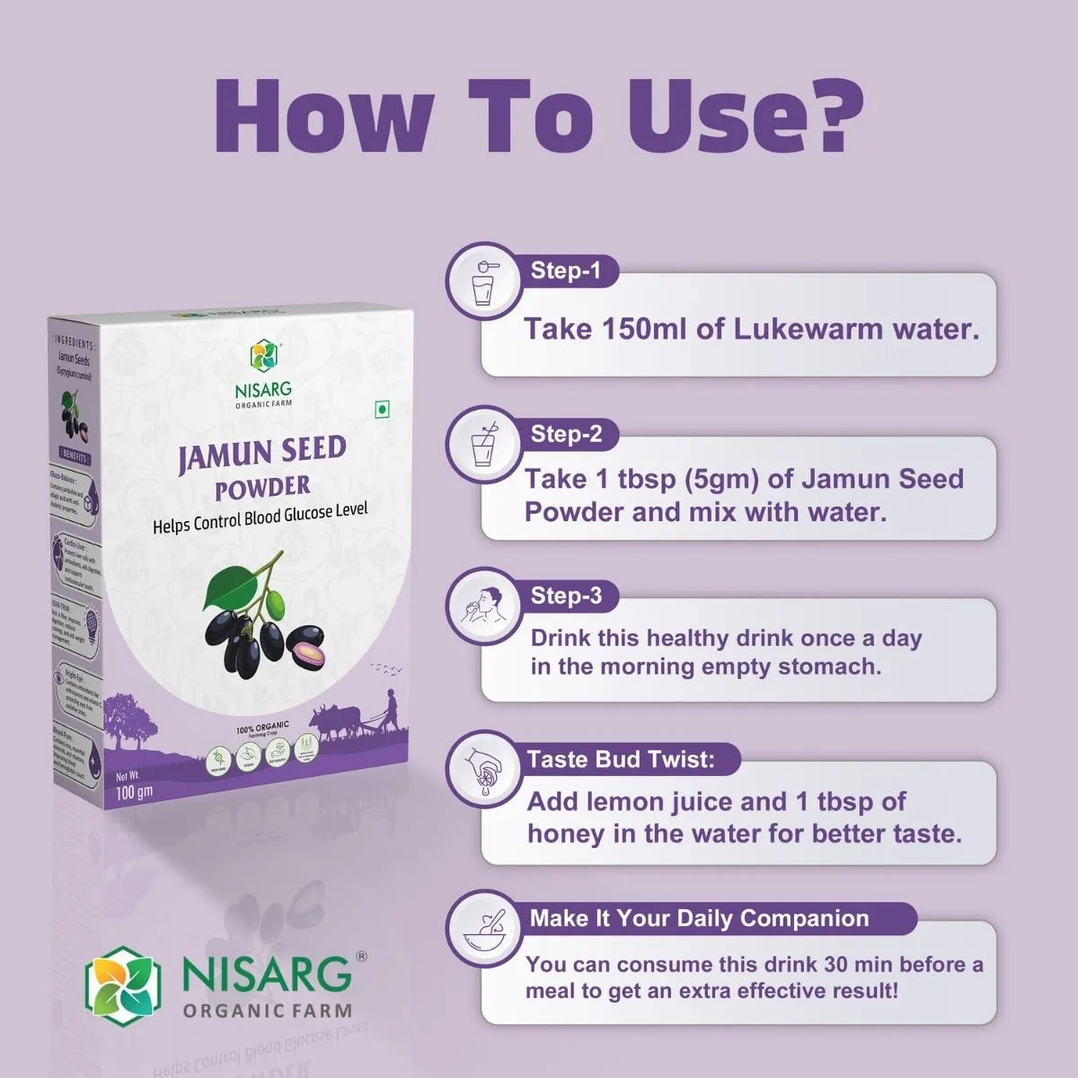 Jamun Seeds Powder | 100% Pure and Organic 100g | Nisarg Organic Farm