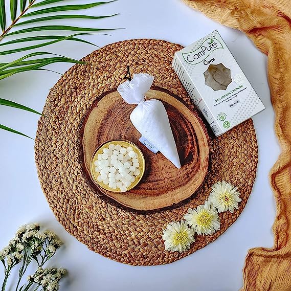 - TWO IN ONE BENEFIT: Unlike conventional products which are either a fragrance or a repellent, CamPure Camphor Cone is both: It provides a REFRESHING FRAGRANCE, REPELS MOSQUITOES and even ELEVATES MOOD. CamPure Camphor Cone does not consist of any fillers, additives or bases.