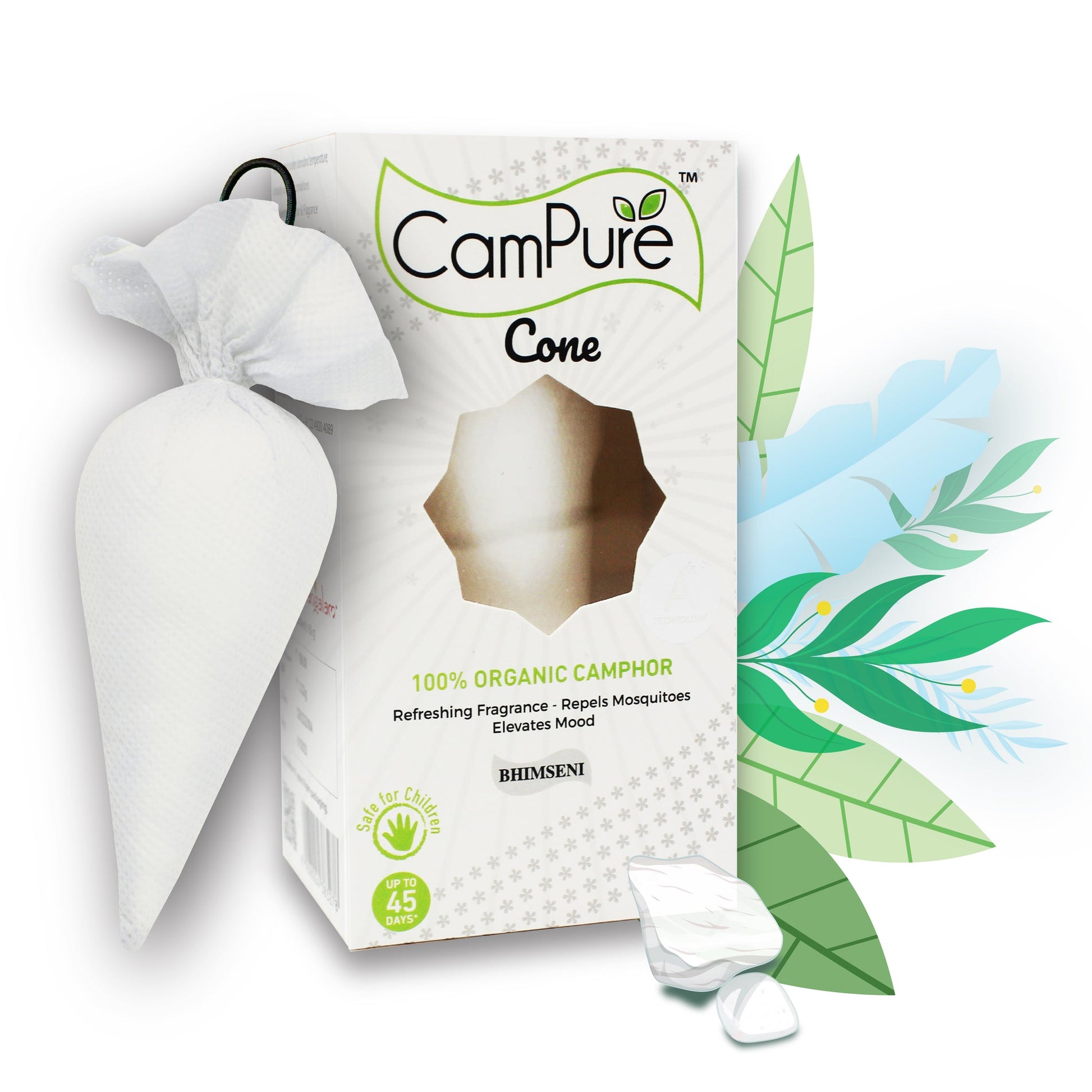 - NO DANGEROUS CHEMICALS – SAFE AROUND CHILDREN: CamPure Camphor Cone is made from an extract of the pine tree and is therefore a NATURAL and ORGANIC product. There is no harmful toxic chemicals such as DEET, PDCB, Napthalene or any other petrochemicals which are potentially cancer causing (carcinogenic)