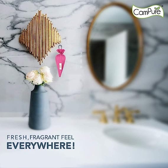 - ROSE CAMPHOR CONE (PINK): Enjoy a romantic flair with the light floral scent of roses. Our unique camphor-based fragrance lasts for 45 days or longer depending on temperature, humidity and wind. The micron-sized granules come in an attractive “control release” cloth covering (not plastic), which enables the scent to spread and quickly neutralize unpleasant odours.